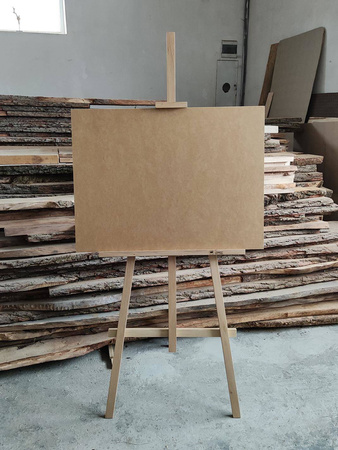 Sztaluga została wykonana w 100% z litego drewna dębowego. Dodatkowo do sztalugi, dodajemy płytę HDF 3 mm.